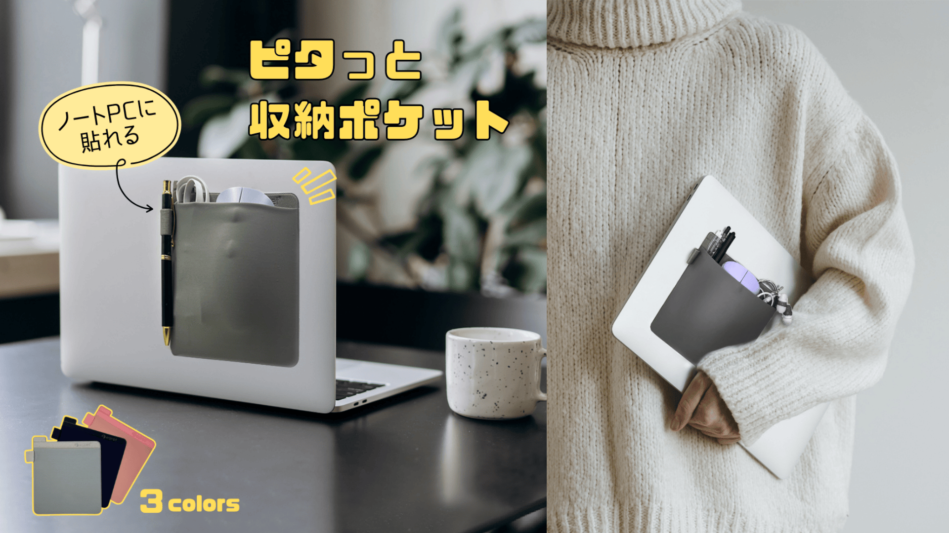 ノートPCにピタッ!スマートに小物を持ち運べる “ピタッと貼るポケット”新登場